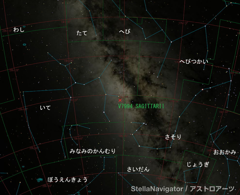 R.A. = 19h06m28s.58, Decl. = +7o06'44".3 (2000.0) CBET 1512による |